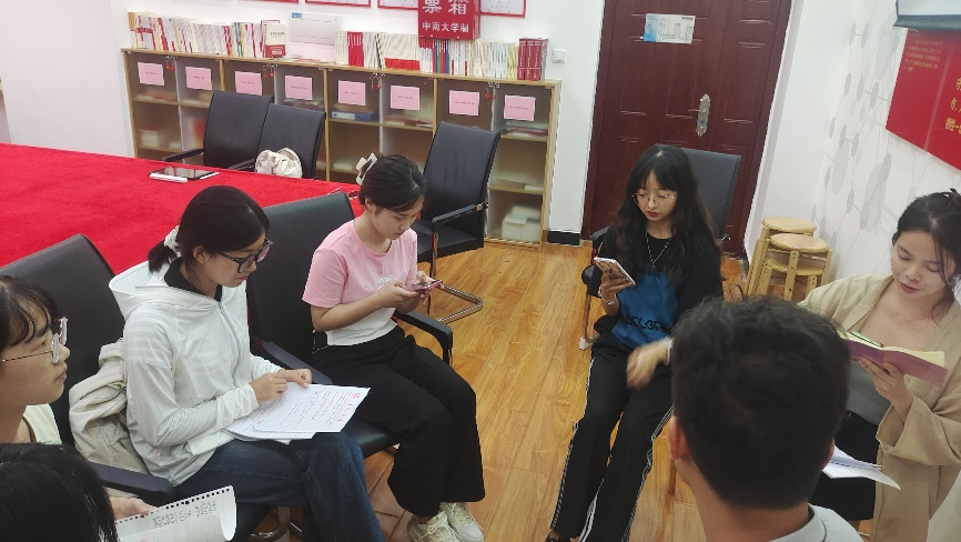 会议第三项,支部召开专题组织生活会。首先,新生党员依次进行自我介绍,罗文环同志对新加入党支部的四位新生党员表示欢迎;随后,党员同志开展批评与自我批评,并进行民主评议。支部党员分为两组,组内轮流发言,结合自身科研经历、学习生活情况、党史学习情况,进行总结和自我批评,并提出努力方向,其他党员同志指出问题、给出建议,大家在批评与自我批评中不断进步、成长。最后,张寿春老师和罗文环同志对本次专题组织生活会做出总结,并对党支部成员的理论知识学习提出要求。