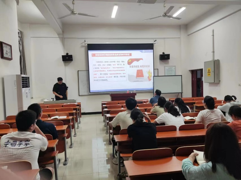 其次,郑怡健同志继续带领支部党员以《中国共产党纪律处分条例》解读为主题讲党课。重点讲述了《中国共产党纪律处分条例》的发展历史、背景特点、主要内容及贯彻落实情况。从1997年2月27日,中共中央发布实施的《中国共产党纪律处分条例(试行)》到2023年版《中国共产党纪律处分条例》,一路历经五版修订。从总则来看,《中国共产党纪律处分条例》积极贯彻落实党的重要理论、路线、方针、政策,体现了高度的政治性。从分则来看,《中国共产党纪律处分条例》的内容与时俱进,符合监督执纪的现实需要。