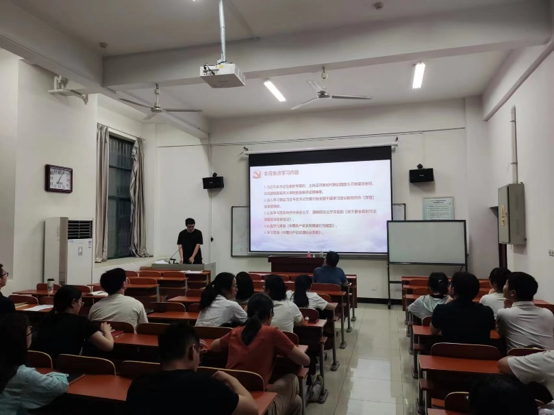 首先,支部书记郑怡健同志带领大家学习习近平总书记近期系列重要讲话精神,内容涵盖了习近平总书记在重庆考察时、主持召开新时代推动西部大开发座谈会时、在视察陆军军医大学时的重要讲话精神;深入学习领会了习近平总书记为第六批全国干部学习培训教材所作《序言》的重要精神。