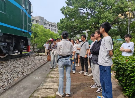 在中南大学铁路园中,小组成员参观了园内陈列的蒸汽、内燃、电力三台机车,它们分别代表了中国火车机车的三个时代。同时也了解了从铁道学院走出的著名校友事迹,中南大学在铁路事业中做出的卓越贡献以及党在我国铁路事业发展中的领导作用。