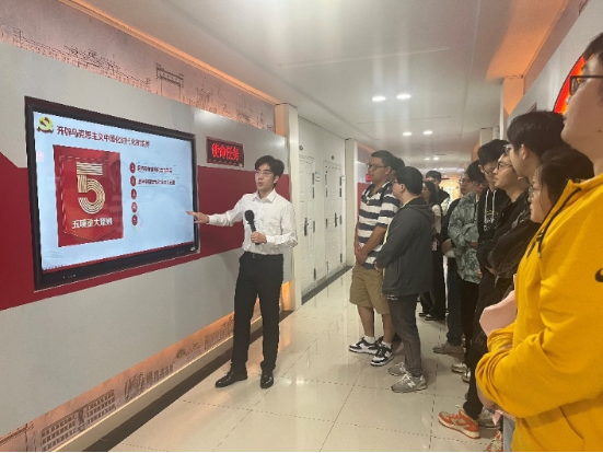 在思政教育实践体验课堂党建教学基地中,多小组成员全面学习了解了党的历史、理论和实践。在理论创新,使命任务,发展格局等各展区的参观学习中对党的发展历史有了更清晰的认识,对二十大报告精神有了更深刻的理解和感悟。