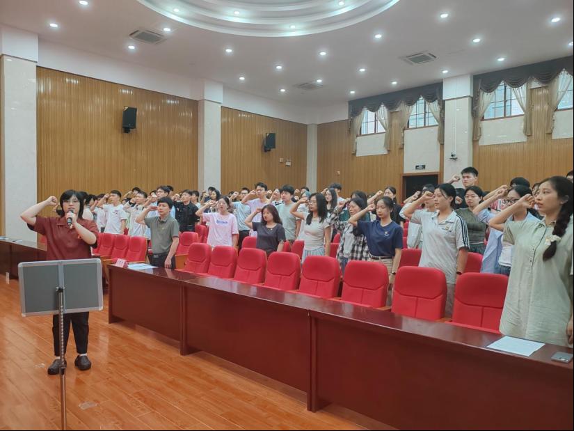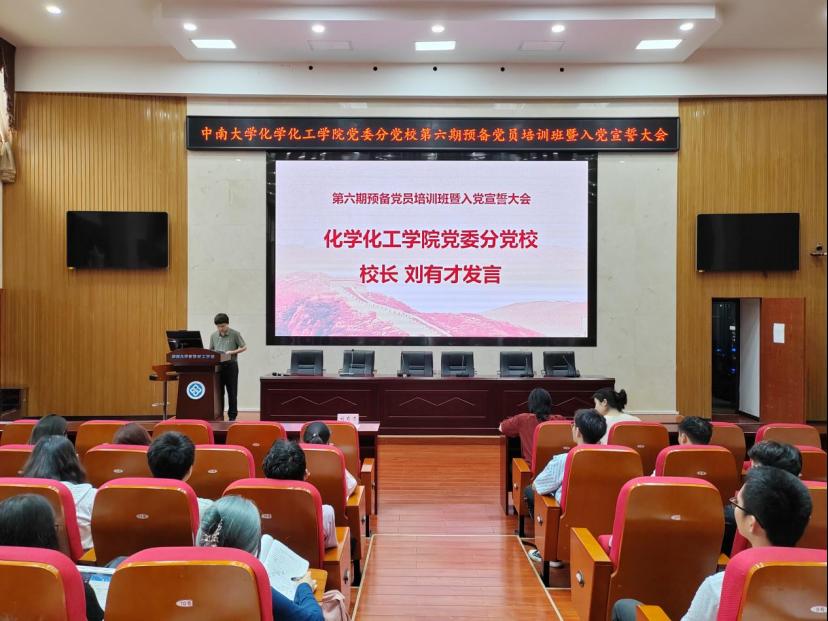 为深入学习贯彻党的二十大精神,增强预备党员对党的基础知识和创新理论的理解,提高其思想觉悟,加强党纪学习教育,6月19日下午,学院党委在化工楼133报告厅举行了第六期预备党员培训班暨入党宣誓大会。院党委书记、分党校校长刘有才,院党委专职组织员、分党校办公室主任汪菁垚,本科生化工第一党支部书记、院党委分党校第49期积极分子培训班班导师肖茜斤出席本次大会,第18期发展对象培训班顺利结业的64名预备党员参会。本次会议由预备党员培训班班导师谭澳利主持。