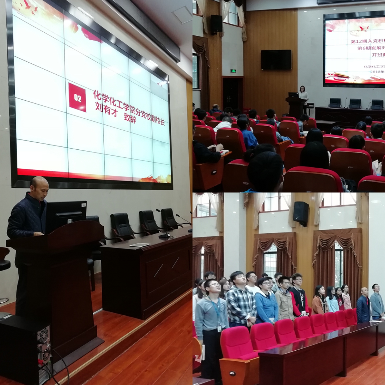 2018年10月17日,化学化工学院分党校第12期入党积极分子培训班及第6期发展对象培训班开班仪式在新化学楼133教师隆重举行。化学化工学院党委副书记、分党校副校长刘有才同志出席仪式并发表致辞,化工院党委组织员里李璞同志、本科2017级党支部书记刘世宏同志、培训班班导师范帆同志以及全体学院参加开班仪式,开班仪式由班导师范帆主持进行。