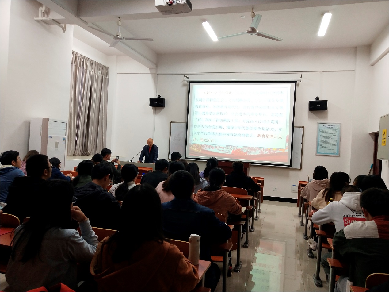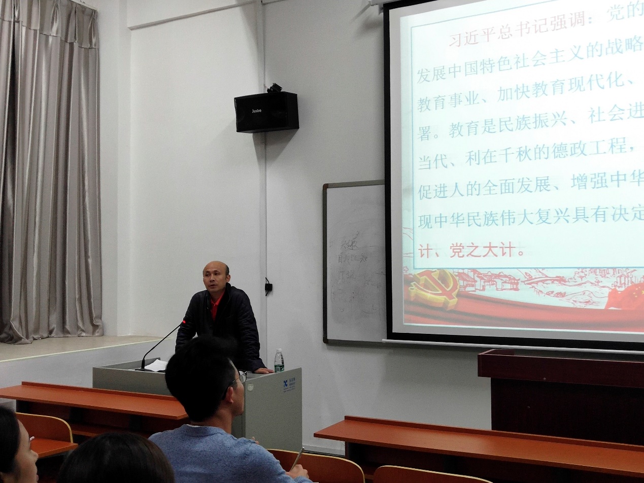 刘有才副书记从教育的首要问题“培养什么人”出发,围绕“立德树人”的总目标,结合“九个坚持”的教育改革发展新理念;坚持办好教育的根本保证是加强党对教育工作的全面领导等四个方面解读了习近平总书记在全国教育大会上的讲话精神。刘有才副书记还将党的十九大、社会主义核心价值观、过去五年党和国家取得的历史性成就、我国社会主要矛盾变化的深远影响,“新时代”以及“两个一百年”奋斗目标等内容融入到整个课堂当中,授课内容充实而深刻,极具思想性,授课方式深入浅出,娓娓道来,获得了在场学员们的热烈掌声和好评。