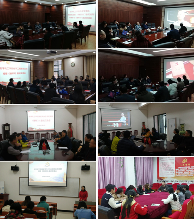 为继续推进“两学一做”学习教育深入开展,弘扬爱国奋斗精神,根据校党委组织部下发的《关于收看<榜样3>专题节目的通知》精神,11月12日,化学化工学院党委认真组织全体在职教职工党员和在校学生党员进行了学习宣传和座谈交流,并集中收看了《榜样3》专题节目。