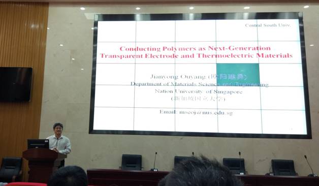 2016年10月17日下午15:00,新校区化学楼报告厅133室举办了主题为“Conducting Polymers as Next-Generation Transparent Electrode and Thermoelectric Materials”的学术讲座,主讲人是新加坡国立大学材料与科学工程学院欧阳建勇教授,本次报告会由中南大学化学化工学院刘又年教授主持。