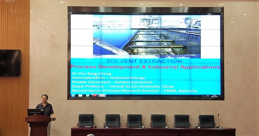 2017年5月3日上午10:30,新校区化学楼133报告厅举办了主题为“Solvent Extraction: Process Development & Industrial Applications”的学术讲座,主讲人是澳大利亚联邦科学与工业研究院(CSIRO)荣誉退休高级研究员成楚永教授,本次报告会由中南大学化学化工学院钟宏教授主持。
