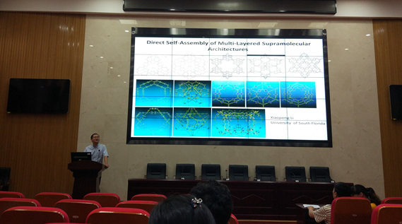 报告会上,李教授主要介绍了设计合成自组装超分子化学及其性质的相关研究。李教授表示他的研究就如做艺术一样,十分迷人。