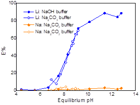 经测试,该萃取剂具有萃取平衡pH值低和水溶性低等优点。对锂和钠的萃取等温线如图所示: