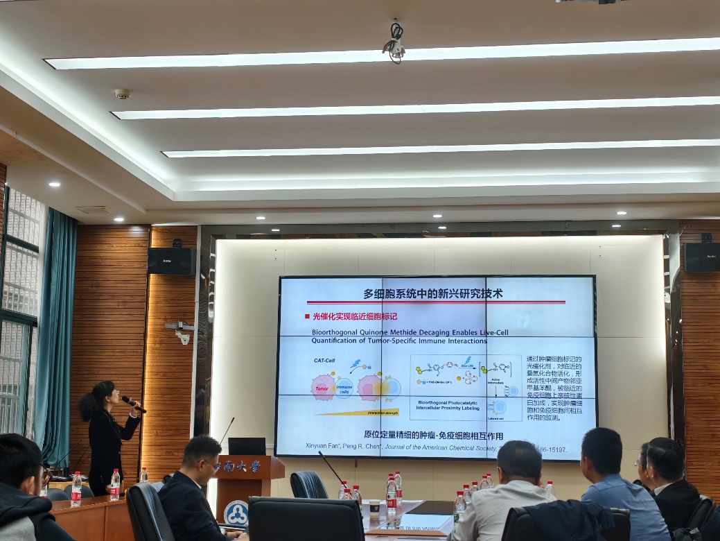 在本次报告中,山西大学阴彩霞教授的报告题目为“多细胞系统化学生物学研究”为题,分享了其团队在多细胞系统领域的前沿研究成果,所研究的荧光探针可在突触可塑性研究和神经投射中应用,为多细胞系统中的靶点发现与疾病解析提供了解决方法。