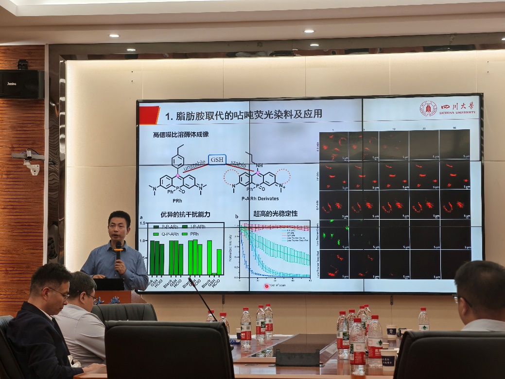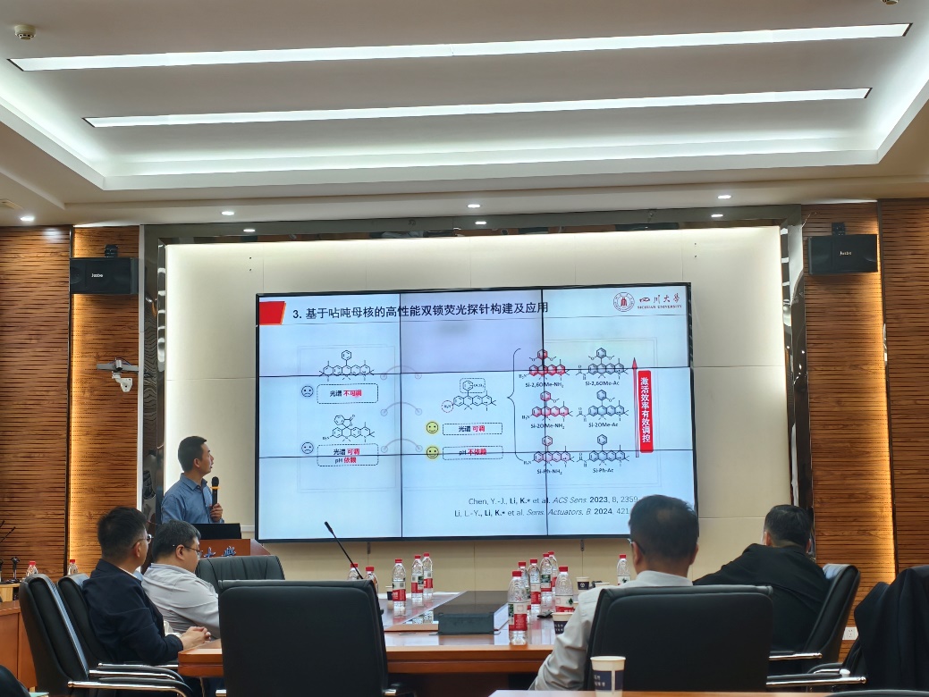 四川大学李坤教授以的报告题目为“罗丹明染料的性能调控与应用”,其团队围绕“咕吨”母核展开研究,通过化学结构的优化设计,开发了多种高性能荧光染料和探针,具有在生物医学成像、光疗和环境检测等领域的潜在应用价值。