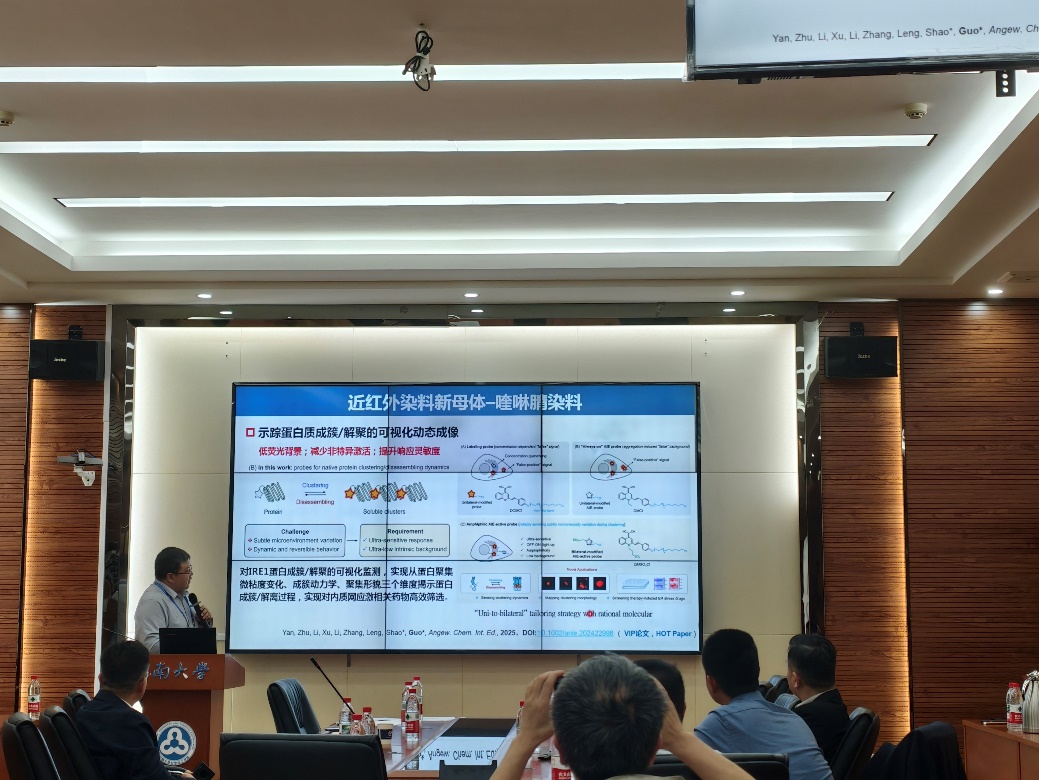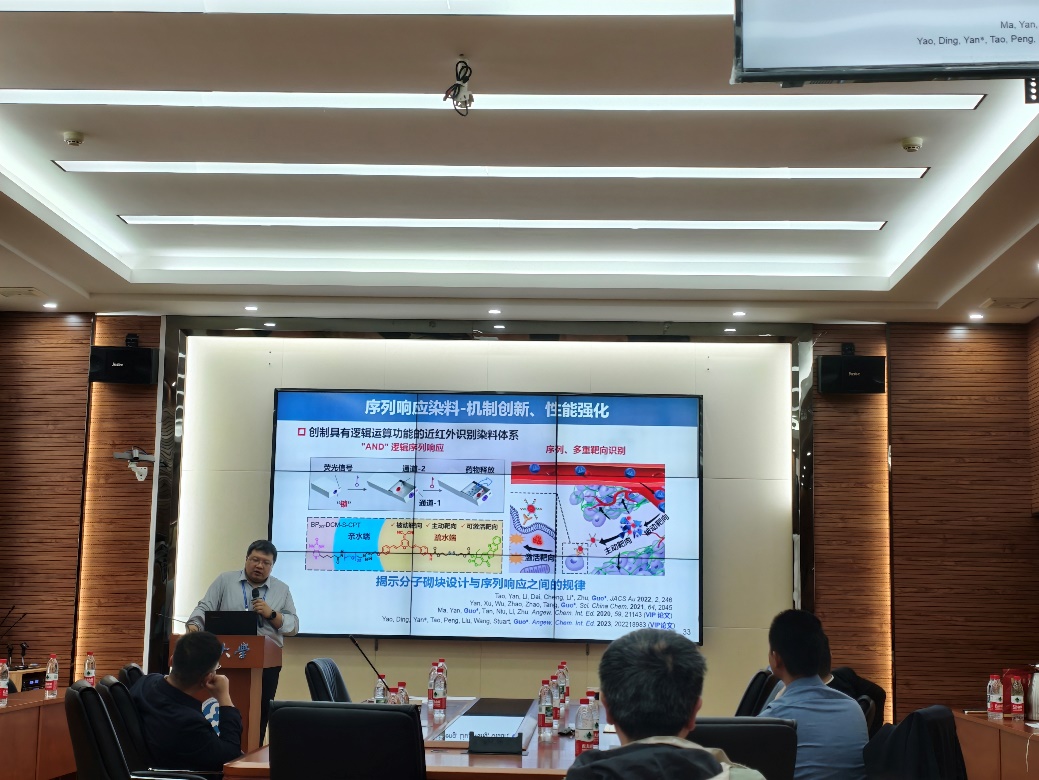 华东理工大学郭志前教授分享了其团队在“近红外荧光染料”方面的最新研究成果。他详细介绍了染料发展历史以及染料与生物医药的应用基础研究,这些近红外染料可以示踪蛋白质成簇/解聚的可视化动态成像以及精准诊疗等,在应用基础研究生物医药检测发挥着重要作用。