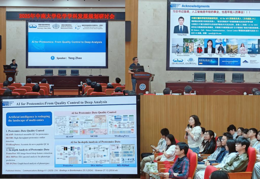 中国计量科学研究院赵洋研究员围绕《AI for Proteomics: From Quality Control to Deep Analysis》主题,聚焦蛋白质组学技术在精准医疗中的应用痛点与突破,强调数据质量是AI分析的根基,也是实现临床转化的核心前提。他重点介绍了团队三大核心技术成果:一是质控工具,SEAOP 集成十种机器学习算法解决跨批次数据异常值检测难题,MCOD通过深度学习框架降低假阴性;二是测序工具,TSARseqNovo基于Transformer架构,实现肽段从头测序速度与精度双提升,较同类工具快2到10倍;三是分析模型,ProteoNet、DIA-MSNet等将质谱信号转化为图像,结合CNN等技术,在肝肾疾病、甲状腺结节等分类中准确率远超传统模型。在应用层面,团队通过多组学与AI融合,完成肺腺癌脑转移分子分型(发现2种亚型及特异性靶点)、肝癌移植复发风险预测(GraphNet模型性能优于临床标准),为精准诊疗提供了坚实的分子依据,有力推动了质谱技术向智能化、临床化方向转型。