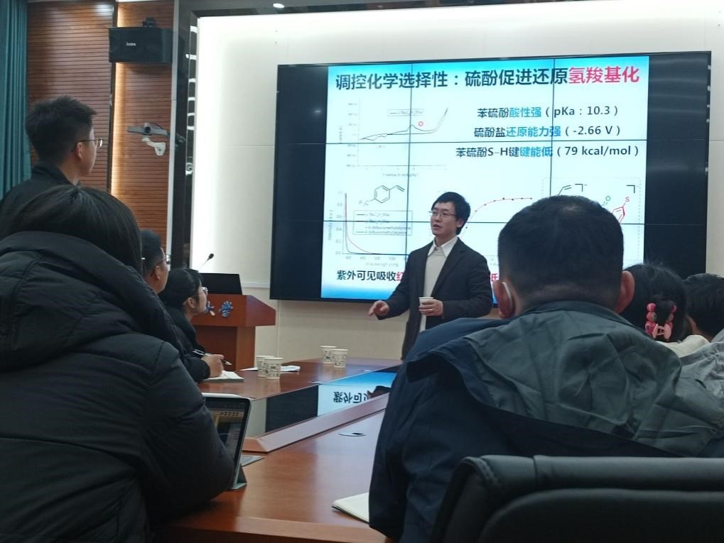 报告上余达刚教授介绍了二氧化碳的转化利用对于目前“双碳”目标的重要意义,以及二氧化碳转化目前所遇到的两个挑战——二氧化碳的热力学和动力学稳定性高。报告重点介绍了可见光催化、电化学和过度金属催化等二氧化碳体系,包括二氧化碳参与的噁唑啉酮合成、二氧化碳参与的自由基型羧化环化反应、二氧化碳参与的C-H键羰基化反应、二氧化碳参与的不对称还原碳-羧基化反应、电促进二氧化碳参与的有机卤代物羧基化、电解池调控二氧化碳参与的含氮杂环选择性羧基化和可见光促进的二氧化碳高效转化等一系列课题。报告内容中提及的研究方向和研究成果具有非常强的创新性,在有机合成的路线搭建思维方面给同学们以深刻的启发。