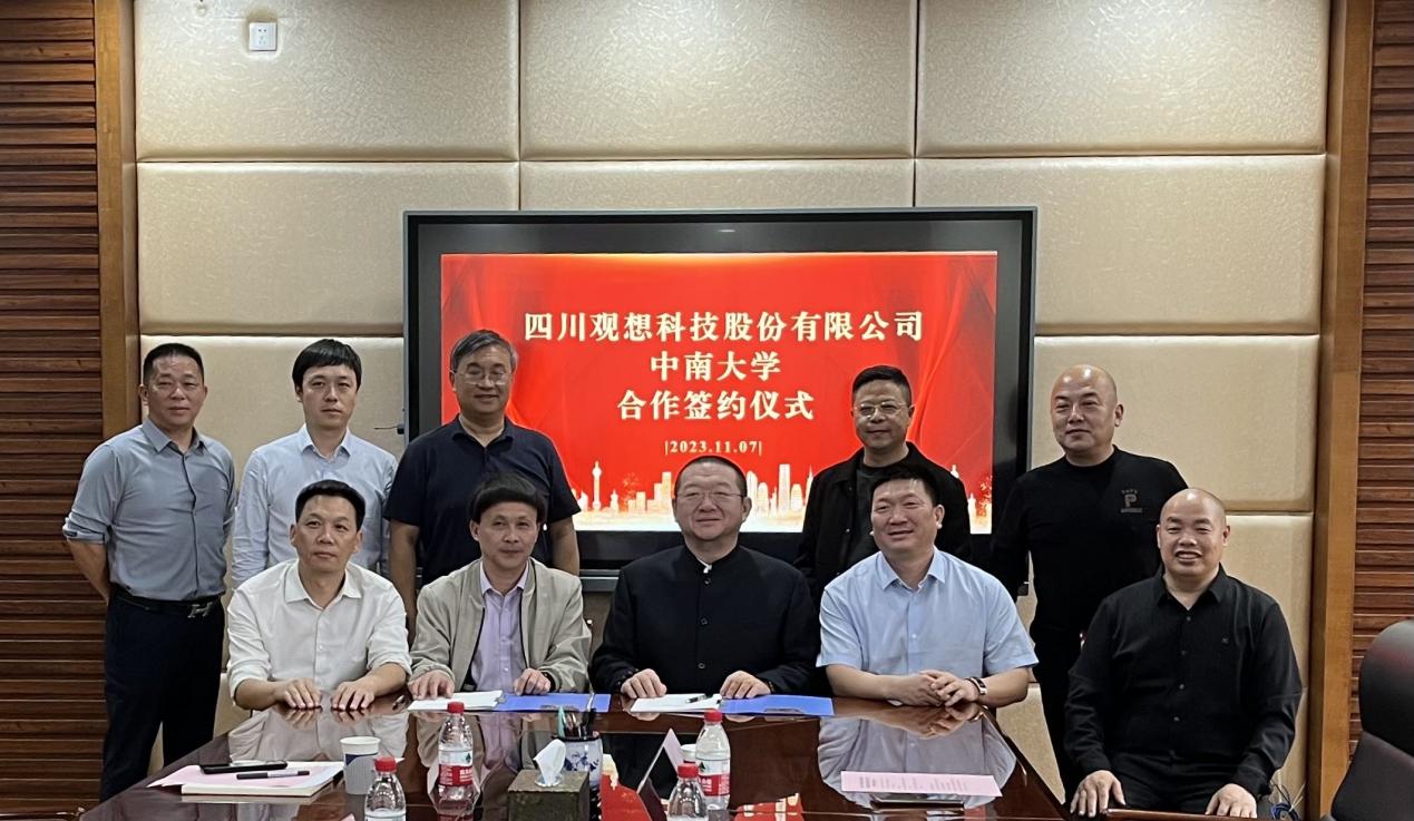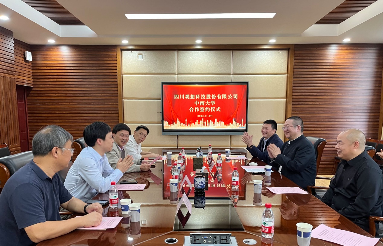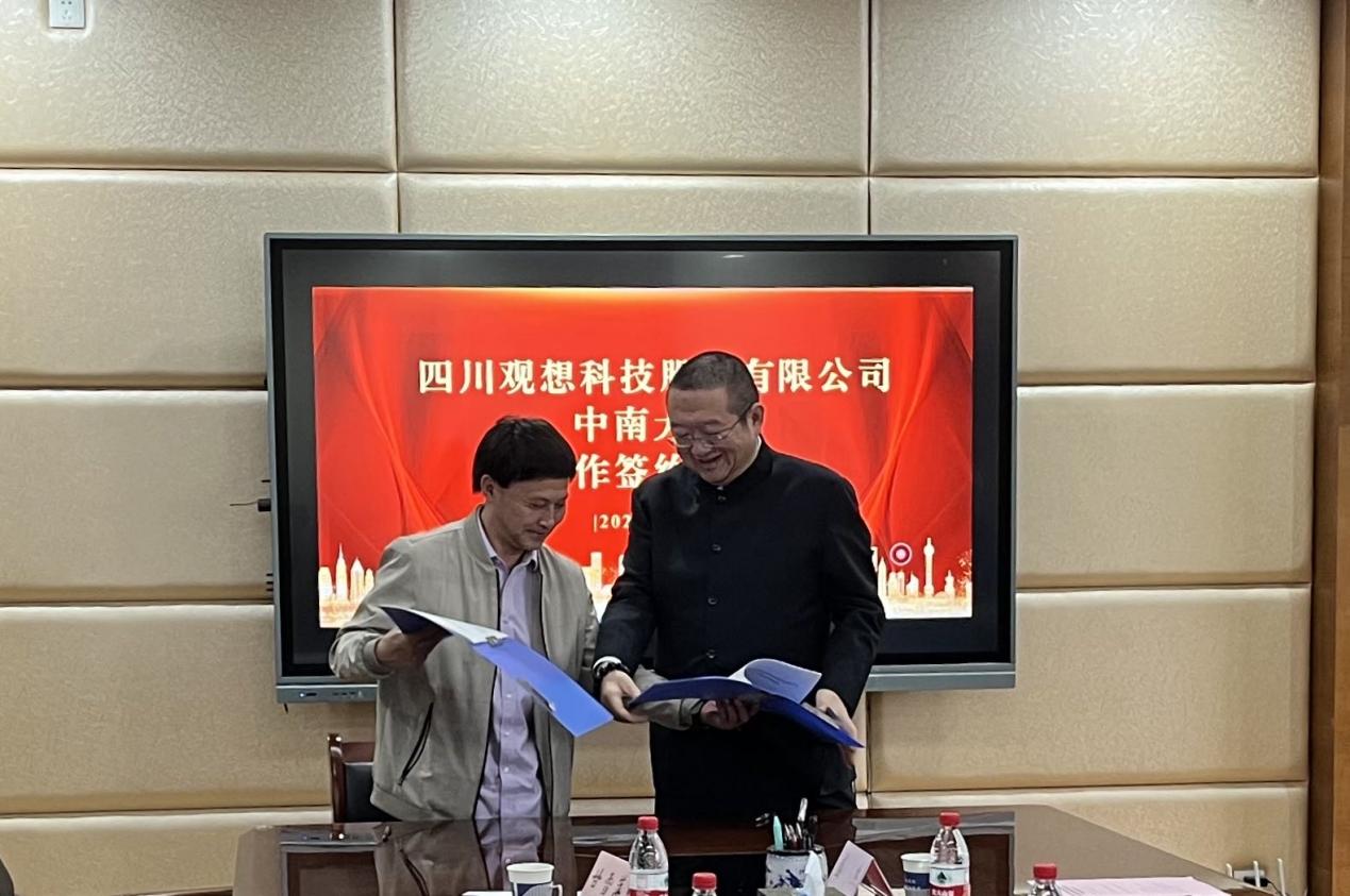 刘有才和魏强代表中南大学和四川观想科技股份有限公司进行了签约,四川观想科技股份有限公司国家战略性稀有金属资源高效利用联合实验室正式启动。