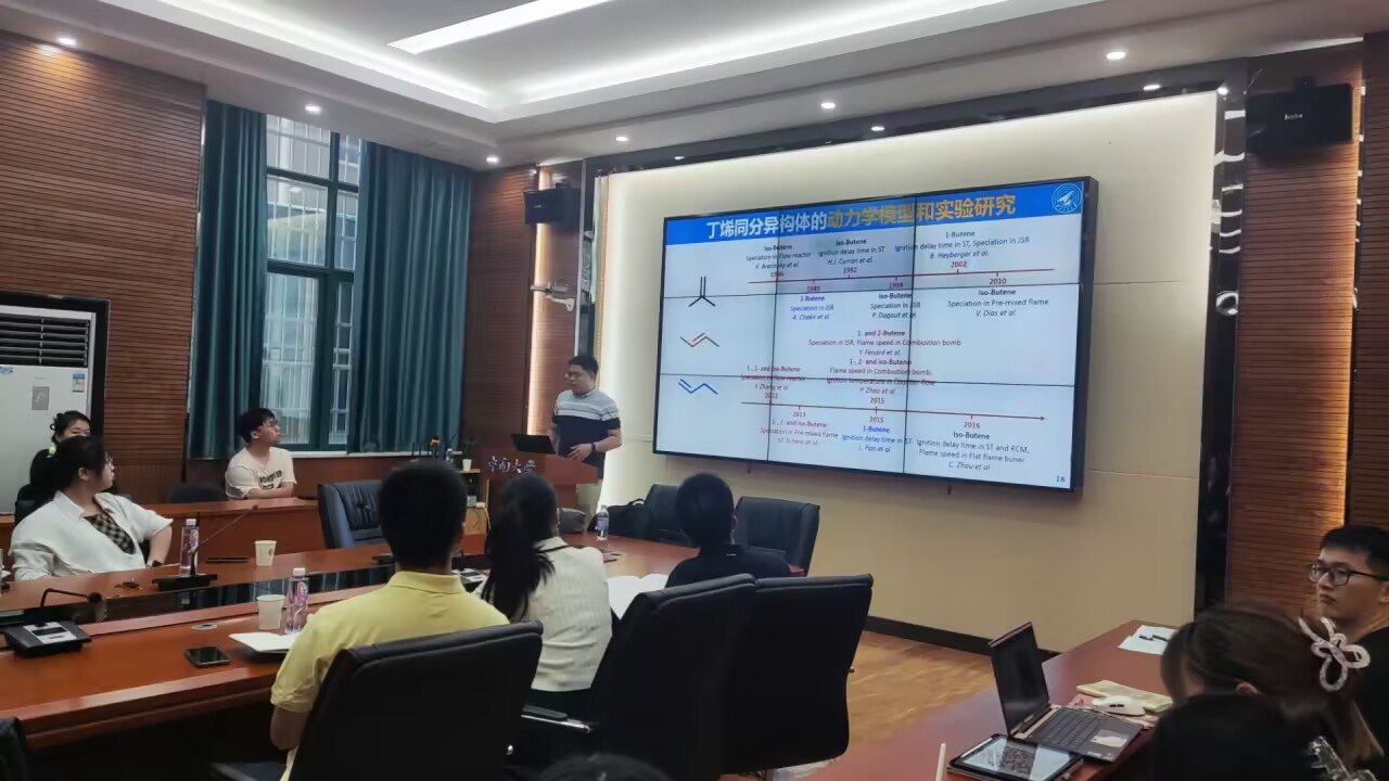 李阳教授介绍了丁烯同分异构体的动力学模型和反应动力学模型,从丁烯同分异构体的核心反应路径,对丁羟复合推动剂的高温气相核心反应路径提供新的研究成果。李阳教授用动画展示了西工大快速压缩机的工作原理,让大家对快压机中燃料点火的理解更加深刻。李阳教授还介绍了目前正在研究的肼类推进剂燃烧化学反应动力学机理构建,开发了189个物种和200多个反应的机理,对开发新型燃料和设计发动机都具有重大意义。