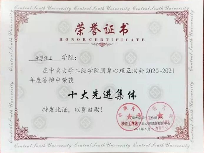 朋辈心理互助会2020-2021年度十大先进集体