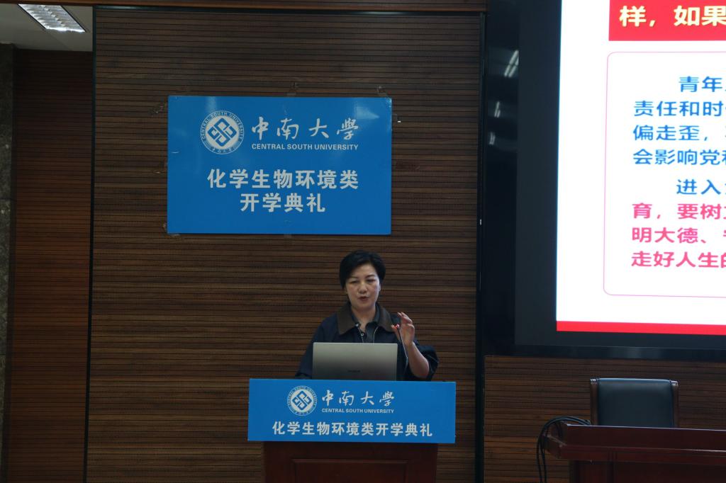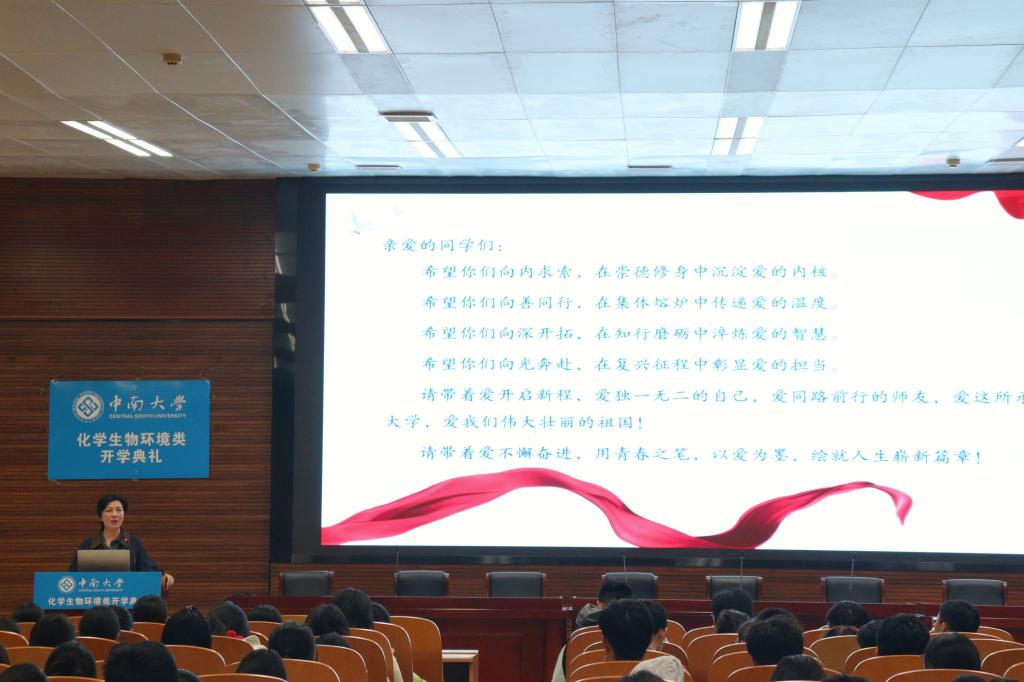 随后,滕晓雯老师以陈新民、黄伯云、王传福、梁稳根等中南优秀前辈的奋斗事迹为例,鼓励同学们见贤思齐,学习前辈们勇于担当奋斗的精神,继承中南人“经世致用,坚毅笃行”的优良传统,将爱国情、强国志、报国行融入学业发展与人生规划中,在新时代征程中书写璀璨的青春篇章。