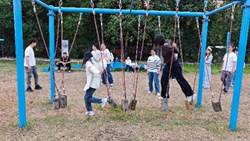 活动设置了双人同行、荡木桥挑战、无轨电车、同心鼓等多个兼具趣味性与挑战性的项目。在双人同行项目中,同学们两两搭档,于钢丝之上相互扶持,在平衡与协作的博弈中,让默契在一次次尝试中不断升温;荡木桥挑战环节,大家在摇荡的木桥上稳步前行,每一次迈步都是对勇气与协调能力的考验,更收获了突破自我的喜悦。