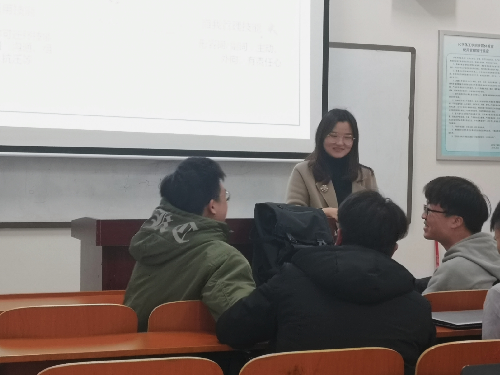 研究生考试结束,为给接下来的春季招聘和研究生复试面试做好准备工作,2019年12月30日下午,化学化工学院16级辅导员范帆老师在化学楼126为化工1603班的全体考研同学做了简历优化的团体辅导。