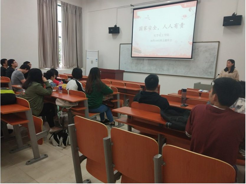 为深入学习贯彻习近平新时代中国特色社会主义思想,坚持总体国家安全观,同时增强同学们的国家安全观念,让同学们意识到国家安全与我们每一个人密不可分。2019年4月19日上午10点,制药1602班全体同学于化学楼125教室举行了主题为“国家安全,人人有责”的主题班会,班导师李芬芳教授参加指导了本次班会。