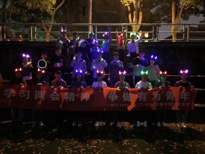 2019年4月14日晚21点,化工1702、统计1801和计算机1812三个班以“学习两会精神,争做有为青年”主题团日活动为契机,在南校操场共同举办了“荧光夜跑”活动,本次活动旨在提高成员的身体素质,为争做有为青年打下一个良好的基础。