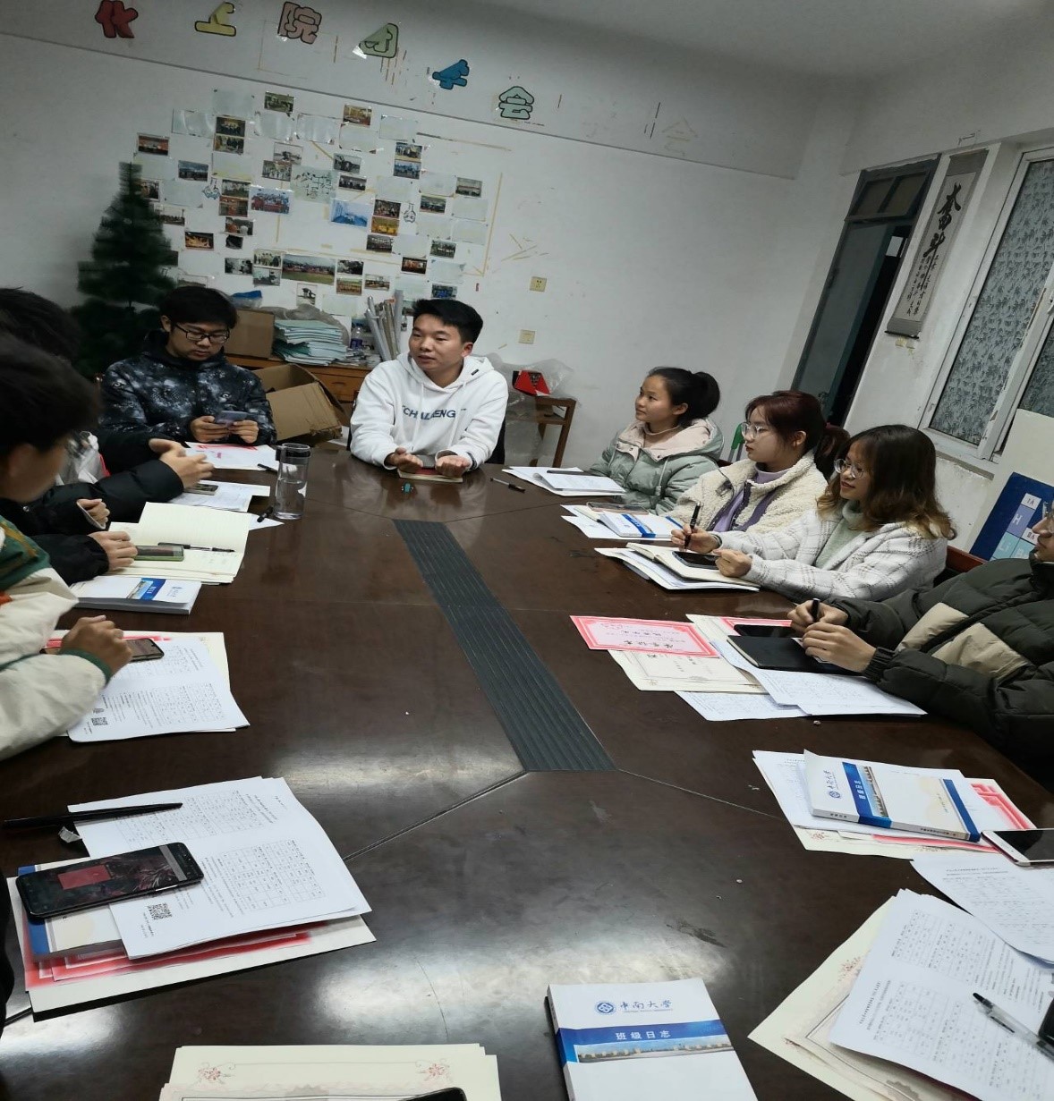 2021年3月8日晚9点,化学化工学院本科2019级新学期第一次班长例会于南校区升华公寓三栋活动室成功召开。辅导员赵元超老师,年级全体班长和年级办助理参加会议。