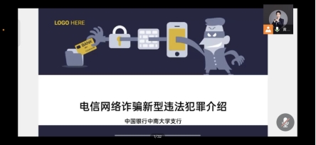 为了更好地让学生了解金融安全相关知识和电信诈骗防范技巧,5月22日上午,化学化工学院各年级开展学生资助诚信教育及金融安全主题活动,提高学生的诚信意识、风险意识和感恩意识,引导他们珍爱信用,理性消费,树立正确的消费观和价值观,增强当代大学生的使命意识和责任担当。学院邀请了中国银行中南大学支行的行长黄思思为大家进行讲解。化学化工学院全体参加了此次活动。
