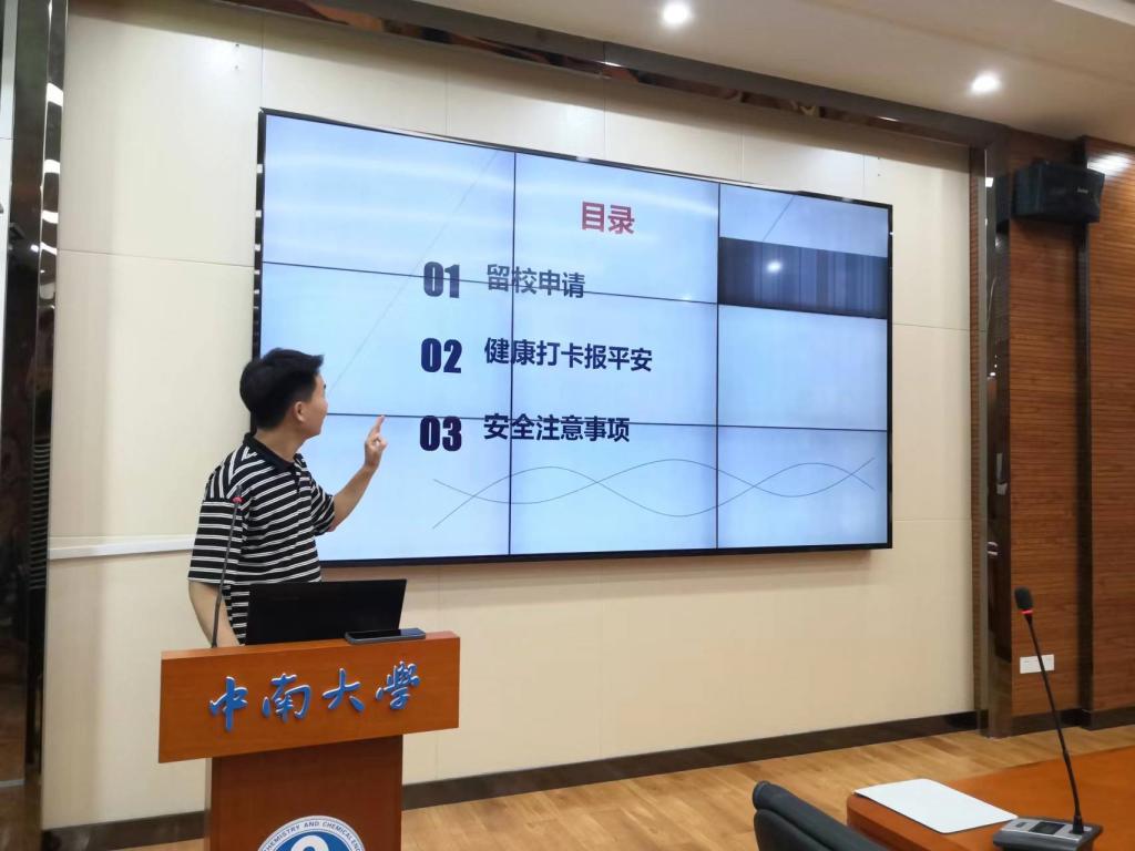 会议首先对暑期留校申请表的填写作出明确说明,同时要求所有留校学生每天按时完成健康打卡和平安报备,辅导员赵元超老师紧接着强调了安全稳定十点重要注意事项。会议要求全体留校学生切实注意日常生活安全,包括用水用电安全、财产安全、网络使用安全和人际交往安全等,自觉强化法制观念,在保证自身安全的前提下维护好大学生良好形象,不参与和组织非法宗教、非法团体活动。对于暑假期间留校的学生,学院将严格执行健康打卡报平安制度和离校报备制度,保持老师、同学、家长间通讯畅通。