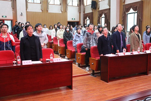 下午四点三十分,刘书记宣布颁奖典礼正式开始,全体师生起立奏唱国歌。