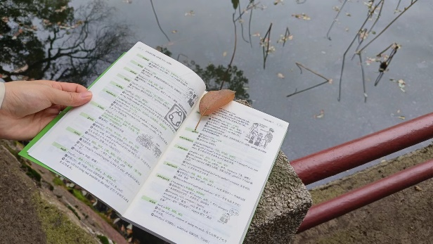 在完成晨读任务后,同学们拾取落叶一片,化作书签一张。晨读让我们忙碌的心灵得到放松,拥有属于自己的欢乐和美好。