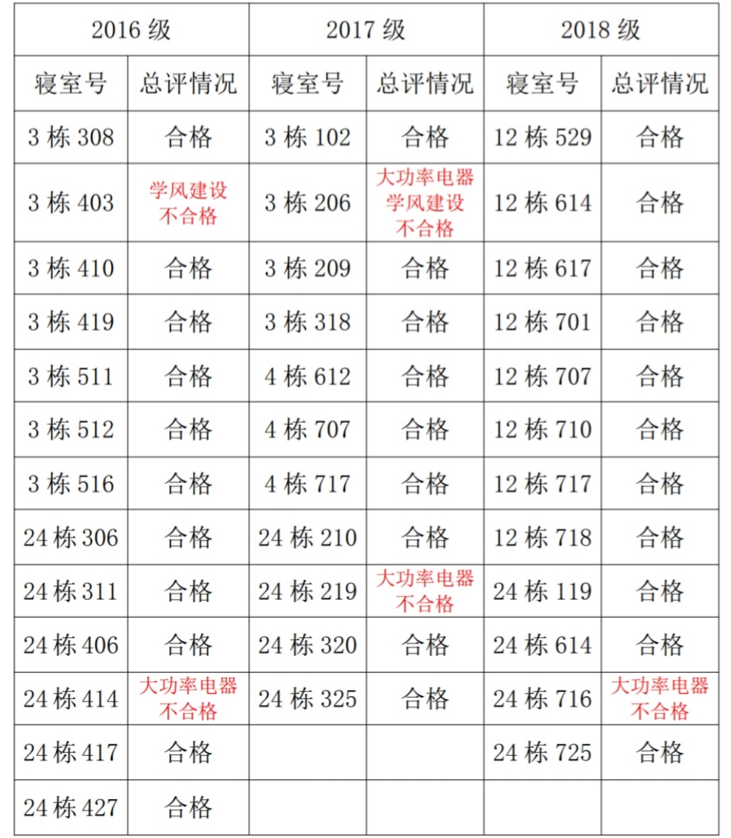 【查寝通报】化学化工学院第十六周查寝通报