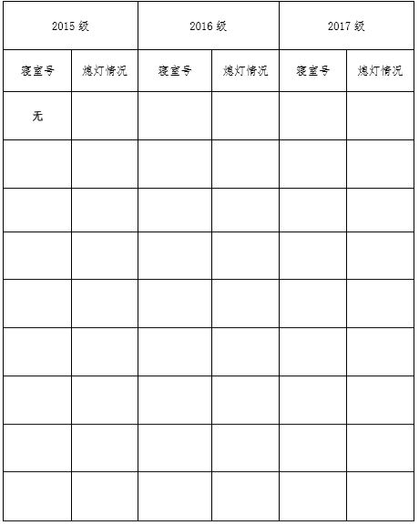 为改正各种不良现象和陋习,增强宿舍学习氛围,营造温馨家园氛围,化学化工学院学生会生活部对三个年级所有寝室进行熄灯检查。 本次熄灯情况通报不合格寝室 0 间,具体情况如下: