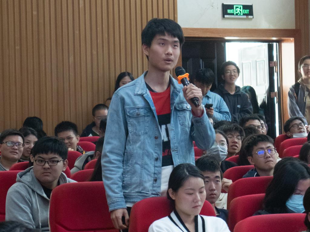 在互动交流环节,在场师生踊跃提问,就富勒烯在催化领域的应用前景、富勒烯-金属离子催化中心的选择以及富勒烯新材料的构建等问题与谢院士进行了深入交流。