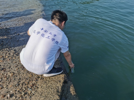 稍作休整后,对资江流域水质采样,范围涉及大溶塘、安化县柘溪人民政府、仙鱼山莊、金竹坪村四处水域。炎炎夏日,调研小组不仅顺着资江一路西行考察资江水质环境,并将采集的水样带回实验室进行分析检测,针对检测结果进行下一步分析和讨论。