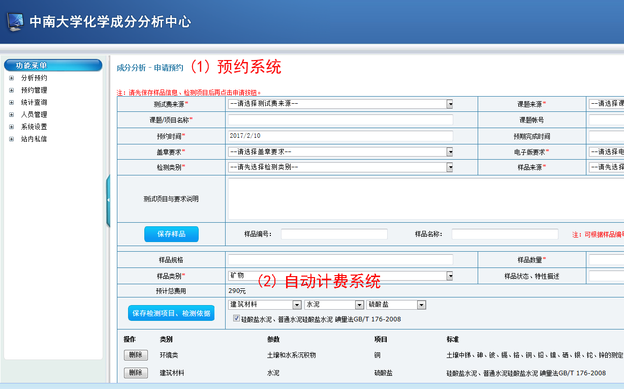分析测试预约计费系统投入使用