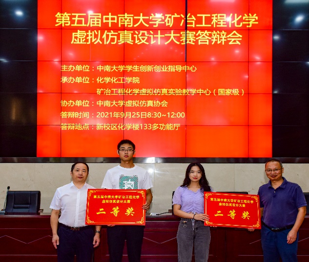 2021年9月25日,由中南大学创新与创业教育办公室主办,化学化工学院、矿冶工程化学(国家级)虚拟仿真实验教学中心承办,虚拟仿真协会协办的第五届中南大学矿冶工程化学虚拟仿真实验设计大赛总决赛答辩在化学化工学院举行。大赛由化学化工学院党委副书记刘有才主持,校资产与实验室管理处副处长丁激文为大赛致词,化学化工学院党委书记罗永忠致欢迎词。评审专家组由湖南省化学化工学科竞赛委员会主任、湖南大学化学化工学院郭栋才教授,湖南师范大学化学化工学院苏胜培教授,湖南工程学院化学化工学院院长邓继勇教授,中南大学自动化学院副院长徐德刚教授,中南大学物理与电子学院副院长李长庚教授等五位专家组成,中南大学化学化工学院阳华副院长等领导、老师和参赛团队出席了答辩会。