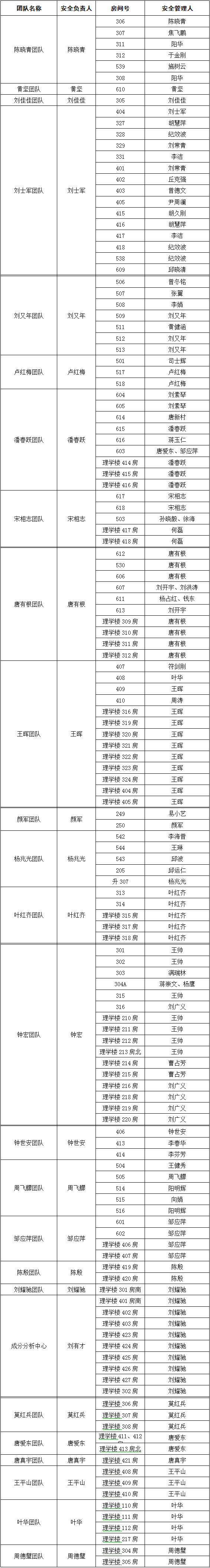 附:各科研团队安全责任人和安全管理人名单