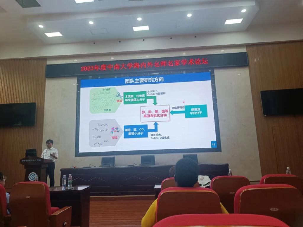 2023年5月17日上午9:30中南大学新校区化学楼133报告厅举办了题为“生物质催化转化”的学术讲座,报告人是中国科学院大连化学物理研究所王峰研究员。报告会由刘伟教授主持,来自全院相关学科的师生们共同聆听了这场精彩讲座。