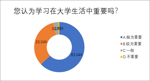 关于“您认为学习在大学生活中重要吗”这一问题,绝大多数同学认为学习在大学生活中十分重要,也希望得到更多在学习方面的指导和帮助,也有不少同学希望自己更为自律,在寒假的学习中实现弯道超车,在下学期初的考试中考取优异成绩。