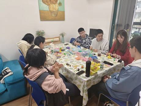 活动正式开始后,同学们在现有材料的基础上,努力构思,积极创作,通过灵巧的双手创造出一个又一个活灵活现、可爱经典的如史迪仔、小猪、玉桂狗、小王子等粘土形象。最后,大家相互分享自己的作品,畅所欲言,彼此交心,倾诉着目前所遇到的难题,讨论着学习方面的心得。整场活动气氛融洽,大家在相互陪伴的过程中也感受到了彼此的温暖,同学们紧张焦虑的情绪也得到了一定程度的缓解。