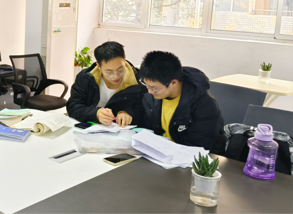 在辅学过程中,小组成员会结伴去图书馆、空教室、知新馆等自习场所,一起学习打卡,有时会为搭子解答学习中的疑难疑点,互相交流进步。其中应化T2201刘敬暄和应化2205班潘鸿标同舟共济,取得了显著的效果。在院辅学讲师刘敬暄的帮助下,潘鸿标的成绩突飞猛进,本学期实现了零挂科率,重拾了学习的信心。其他小组成员也均取得了不同程度的进步。