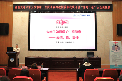 为加强女性健康教育,宣传普及健康知识,2025年3月12日下午,一场以“你好千金——女生健康中国行”为主题的女生健康公益讲座在化学化工学院133报告厅举行。此次讲座由中国妇女杂志社“你好千金”项目组织主办,中南大学化学化工学院团委学生会信息部承办,千金药业协办,特邀中南大学湘雅三医院产科主任米春梅教授授课,吸引了吸引了全校众多学生参与。千金药业集团“你好千金”公益项目负责人张灵芝、院分团委书记肖茜斤出席讲座。