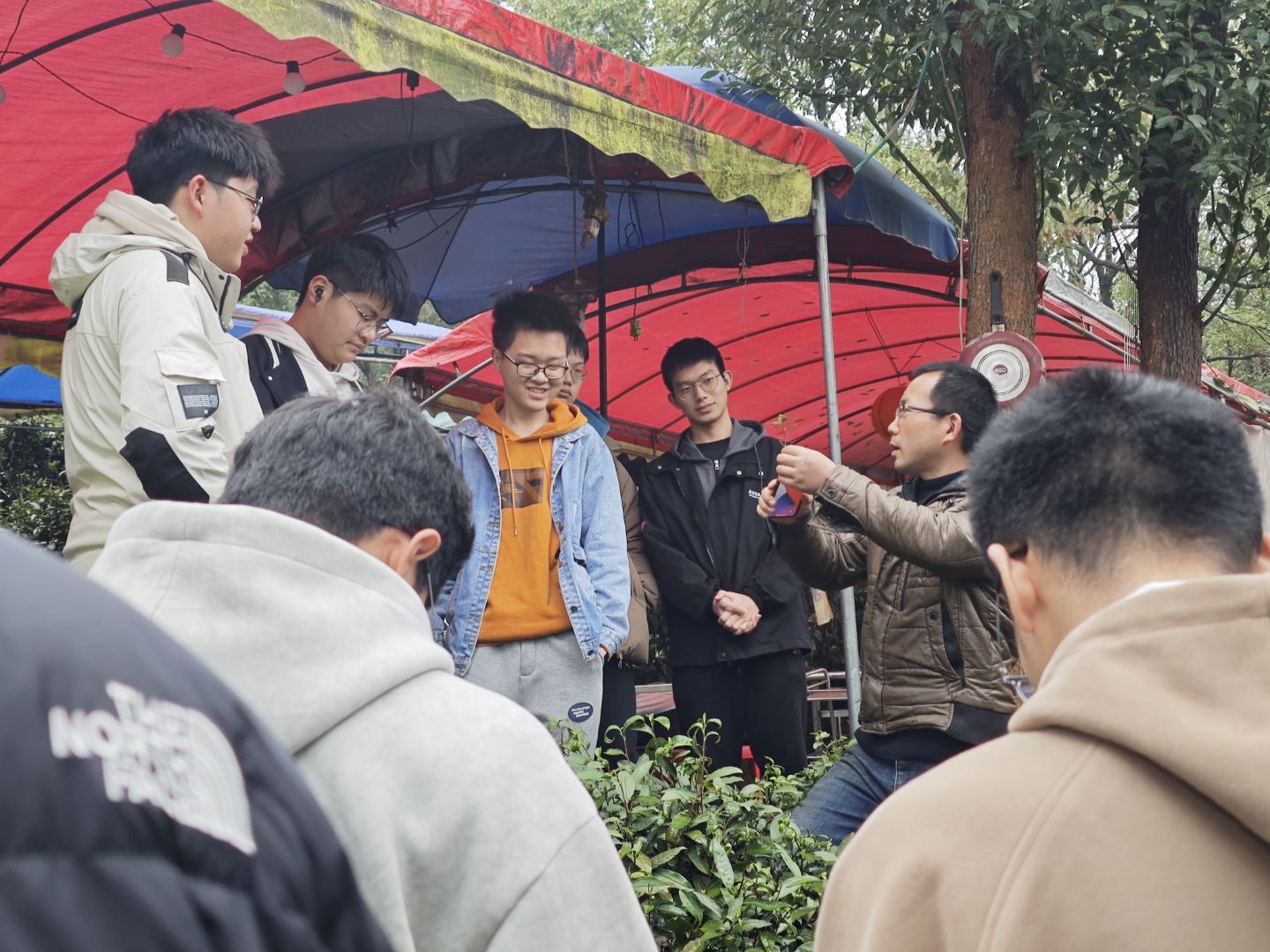 实践环节中,两支部成员混编为3个小组展开植树竞赛。挥锹铲土、扶苗培土、提桶浇水……现场热火朝天,同学们默契配合,将30余株树苗扎根于山坡。活动中,“雷锋岗”志愿者全程协助工具分发、技术指导,以实际行动诠释奉献精神。
