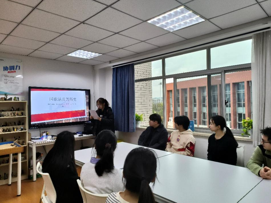 为进一步弘扬爱国主义精神,厚植爱国情怀,2025年3月28日下午,化学化工学院研究生会在毓秀楼313室开展“化工青年·国歌同行—学法规、溯历史、践初心”主题教育活动。活动中,研究生会全体成员学习了解了国歌的历史演进、精神内涵,《中华人民共和国国歌法》的诞生背景和具体内容。