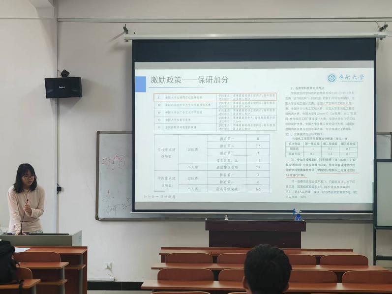 接着,陈思瑶学姐以获奖作品的视频展示为例,从多个维度对作品进行分析,向参会同学介绍工艺流程设计、工艺计算、车间设计等具体内容,结合自身竞赛经历讲解集体答辩过程中需要注意的问题,竞赛需要参考的书目与法律法规,为有参赛想法的同学指明方向。在分享会的最后,两位获奖同学再次鼓励大家,要以求真务实、积极主动的学习态度投身竞赛行列,通过竞赛发展创新能力,培养创新创新思维,增强团队合作能力,体验精彩的大学生活。