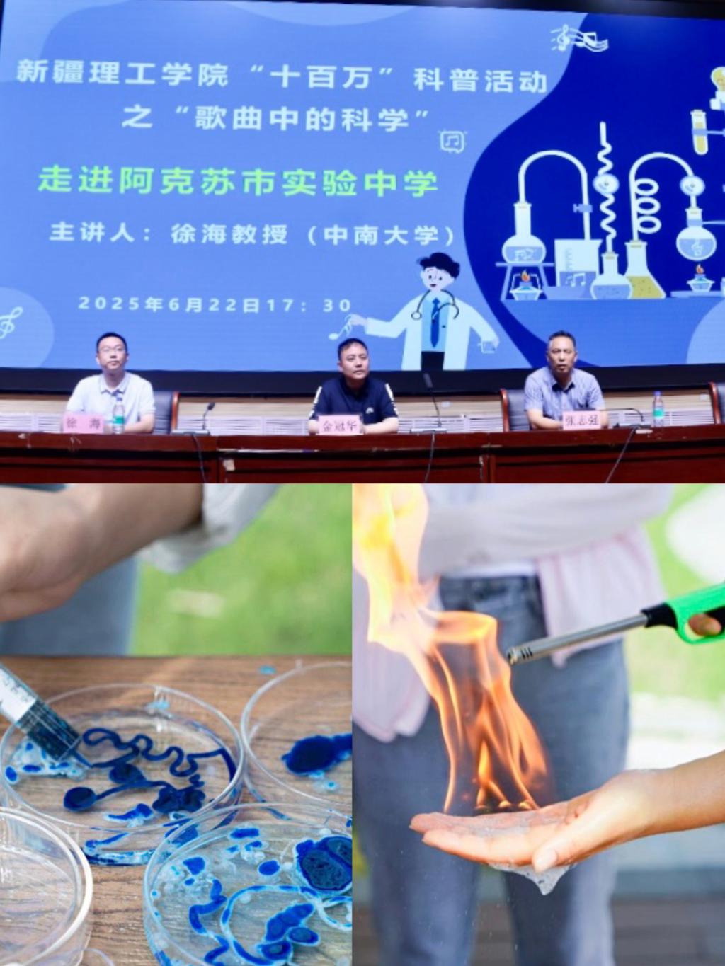 夏令营期间,中南大学化学化工学院的教师团队带领南疆青少年开展趣味科普实验,通过“生活中的化学探秘”等互动项目,激发学生对科学的兴趣,在孩子们心中播撒下探索创新的种子。参与学生纷纷表示,实验活动生动有趣,让他们感受到化学的奇妙魅力。学院徐海教授作为科普领域领军人物,今年暑期也赴新疆阿克苏地区两所中学开展科普讲座,以贴近生活的化学知识拓宽学生视野。